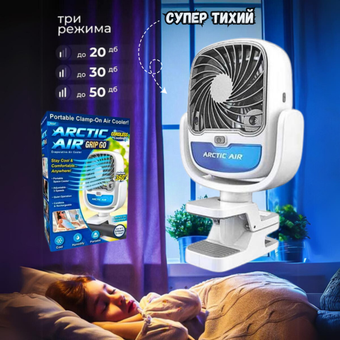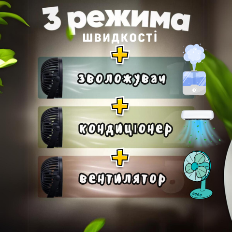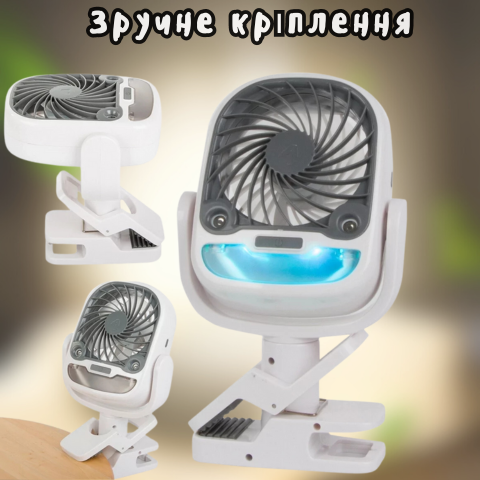 НА ЗАЖИМІ USB RGB 3в1 Вентилятор з резервуаром для води - пристрій, що ідеально підходить для спекотних днів вдома або на роботі. Цей невеликий пристрій здатний зменшити температуру в приміщенні. Завдяки невеликим розмірам його можна пов'язати з письмовим столом, шафою чи столом. Кондиціонер ефективно охолоджує повітря у спекотні дні, а також служить зволожувачем повітря. Ви можемо використовувати його для поширення ароматів ваших ароматичних олій.